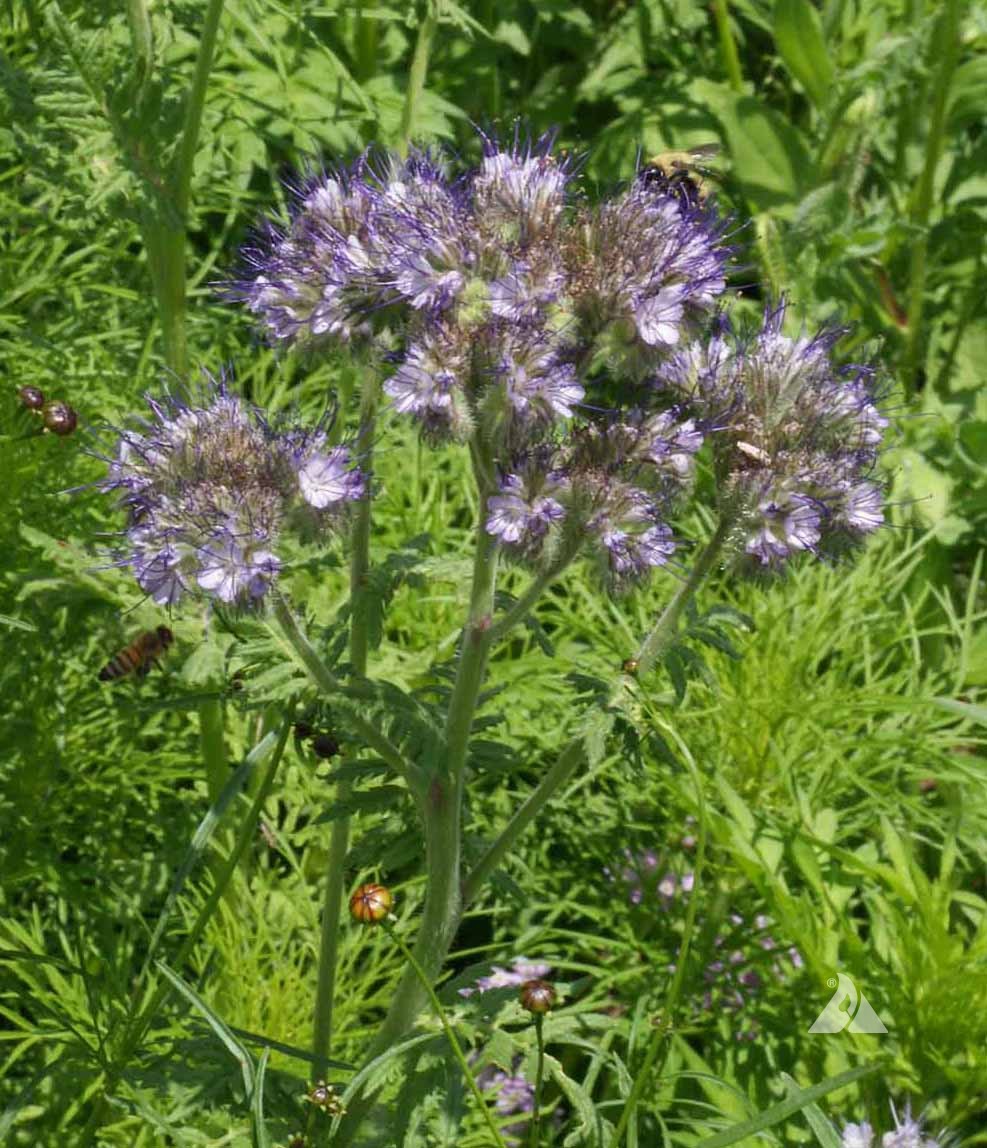 Lacy Phacelia is also known as Lacy Scorpion-weed. This bristly annual is native to California and Arizona and is found in open flats and slopes below 4,000 feet. The violet flowers occur in fiddlehead clusters, which unfold more as plants continue to bloom. Can cause skin irrigation in sensitive individuals. Used extensively as a cover crop and for bee forage. It is a top honey-producing plant for honeybees, and many native pollinators and beneficial insects are attracted to it. Tolerant of poor soils and drought.