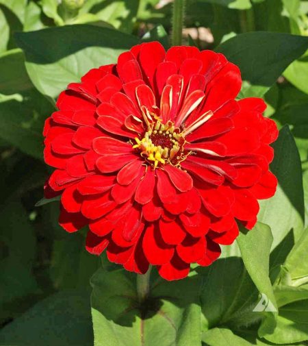 Zinnia ‘Cherry Queen’ has 4-5 inch wide flowers that are fire engine red. This species is native to Mexico, and plants are fast-growing and long-blooming. Zinnias are good cut flowers. In addition, they are excellent for pollinator plantings and are especially attractive to butterflies.